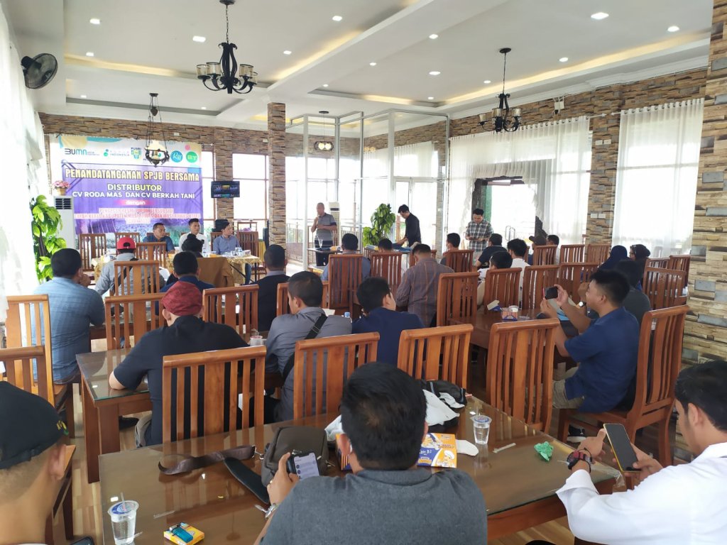 Musi Rawas / Distributor pupuk bersubsidi CV Roda Mas dan CV Berkah Tani mengadakan pertemuan dengan Pengecer Resmi Pupuk Bersubsidi di Wilayah Kerja Kabupaten Musi Rawas yang bertempat di RM Sempurna berlangsung sukses, Senin (17/1/2022).